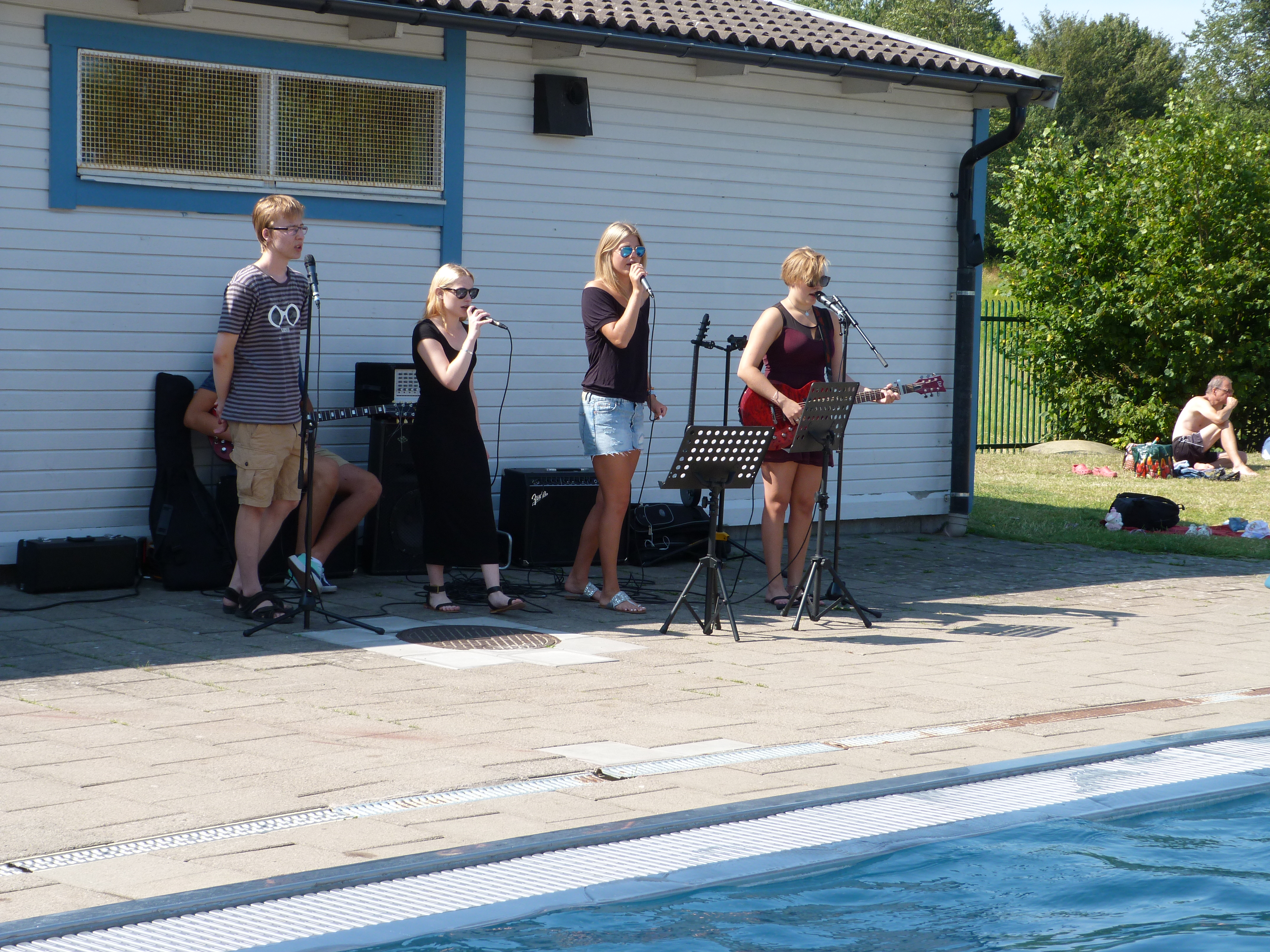 Fem ungdomar mellan 16-18 år har under de tre senaste veckorna haft som sommarjobb att skapa musik. Idag var det dags för en av de avslutande konserterna på Drottninghögsbadet.