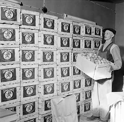 Det blev en del lådor med äpplen, bilden är från 1956.