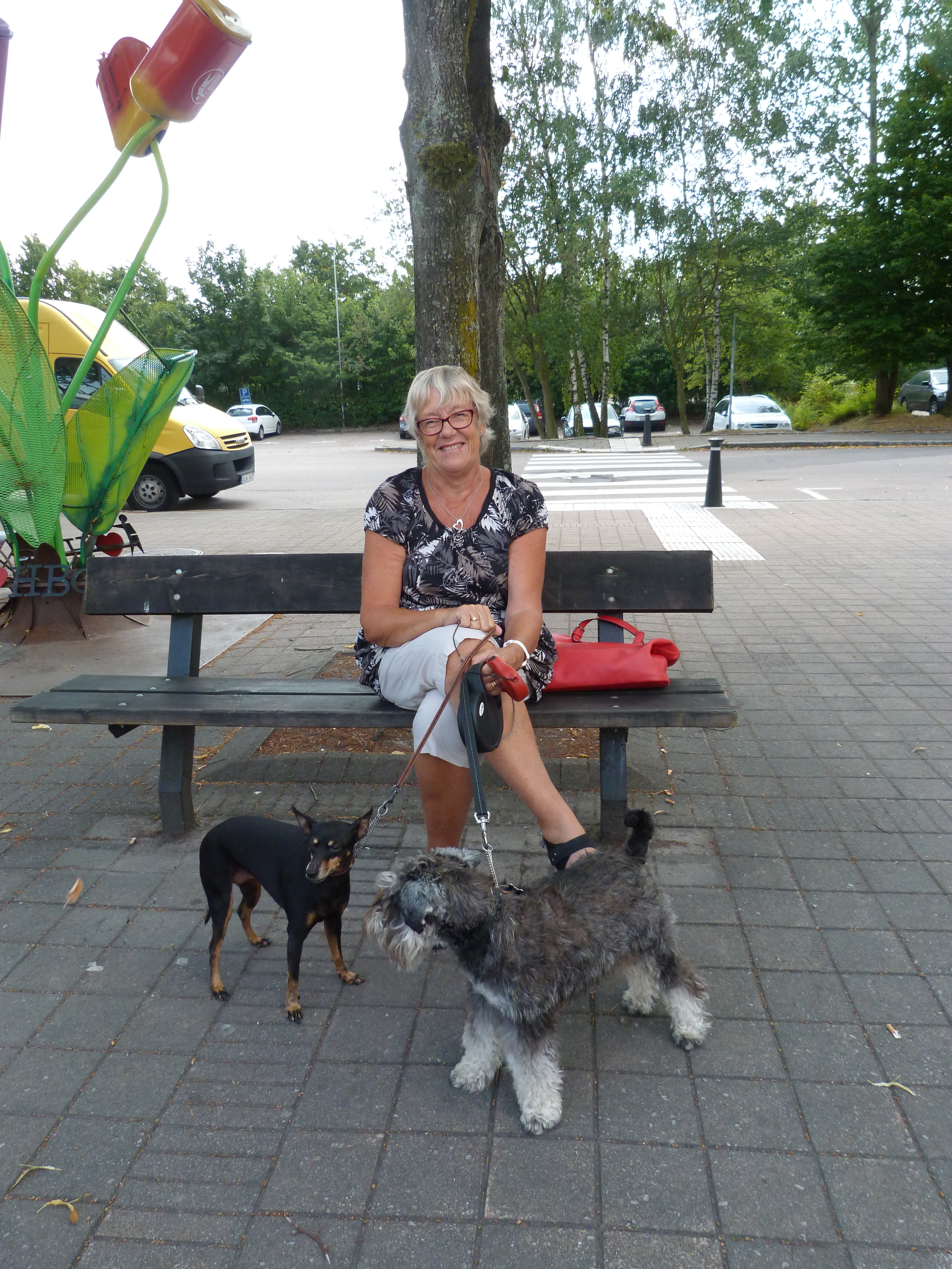 Siv och hundarna Peps och Grace är på besök från Halmstad. Deras favoritplats på Drottninghög är biblioteket/Idé A.