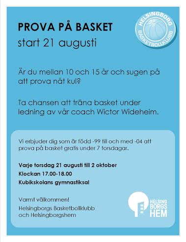 Prova på basket Är du mellan 10-15 år och intresserad av att prova på basket? Sju torsdagar framöver med start den 21 augusti har du möjlighet att spela basket gratis i Kubikskolans gymnastiksal. Välkommen! Dela detta: Klicka för att dela på X (Öppnas i ett nytt fönster) X Klicka för att dela på Facebook (Öppnas i ett nytt fönster) Facebook Gilla Laddar in … Relaterade Lämna en kommentar Avbryt svar Δ Denna webbplats använder Akismet för att minska skräppost. Lär dig om hur din kommentarsdata bearbetas.