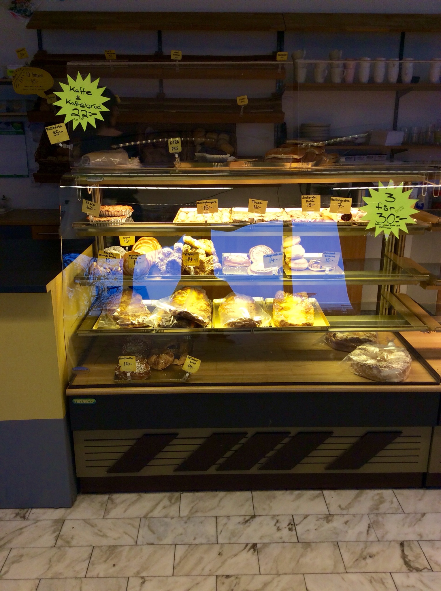 Här handlar ungefär 200 människor varje dag, kunderna tycker om bageriet och tycker att det är en trevlig mötesplats. Här bakas allting på plats , endast få bakelser är beställda.