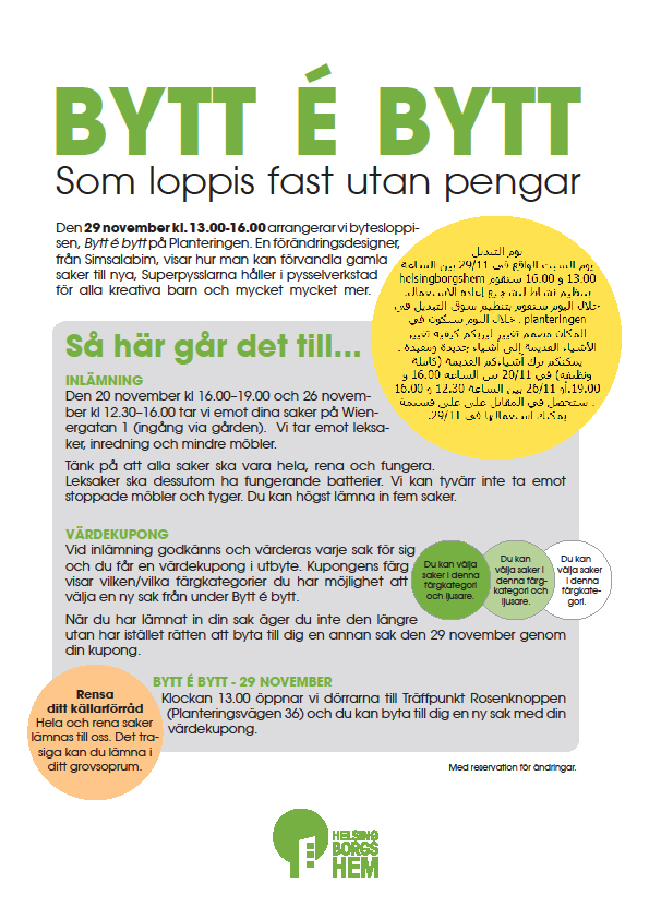 Då kanske Bytt é bytt är något för dig? Istället för att sälja och köpa saker på loppis eller nätet så provas det nu ett nygammalt koncept på planteringen i Helsingborg.