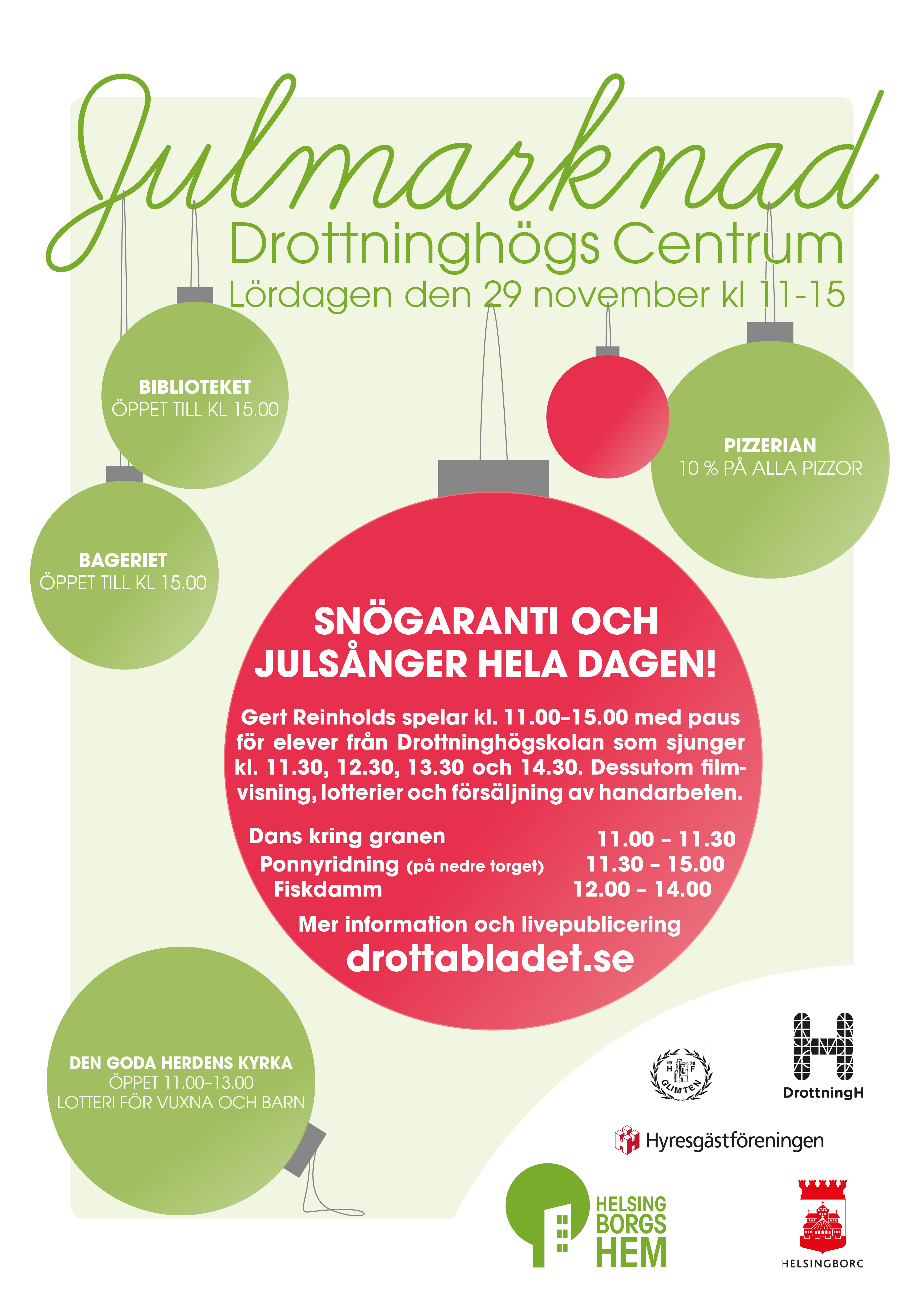 Den 29 november kl 11-15 är det julmarknad på Drottninghög.