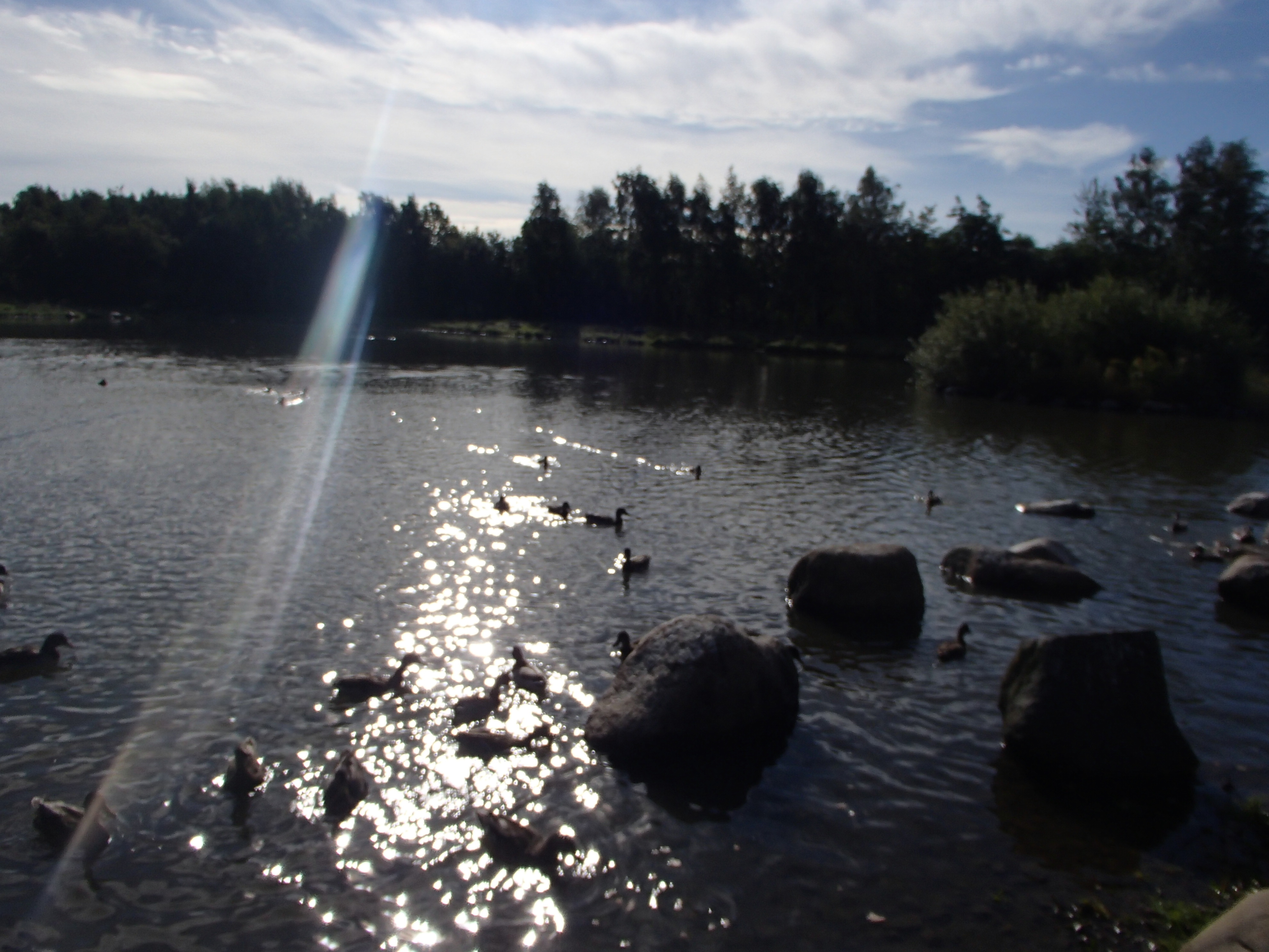 Mata änderna med lite bröd och om du har tur så kan du se någon fisk i vattnet.