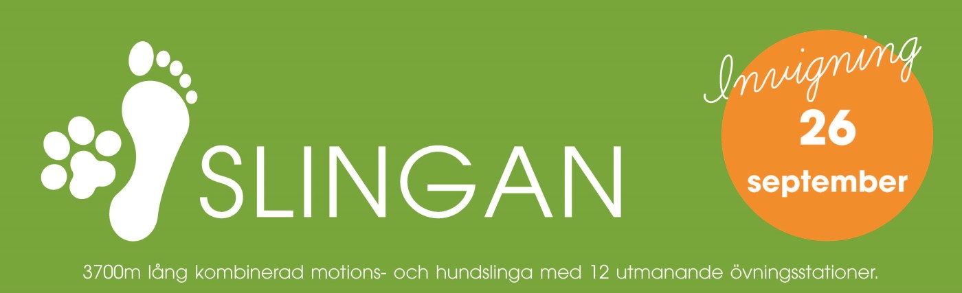 Den 26 september kl 10-12 inviger vi Slingan, en kombinerad motions- och hundslinga med 12 roliga och utmanande övningsstationer. Kom och var med när vi klipper bandet!