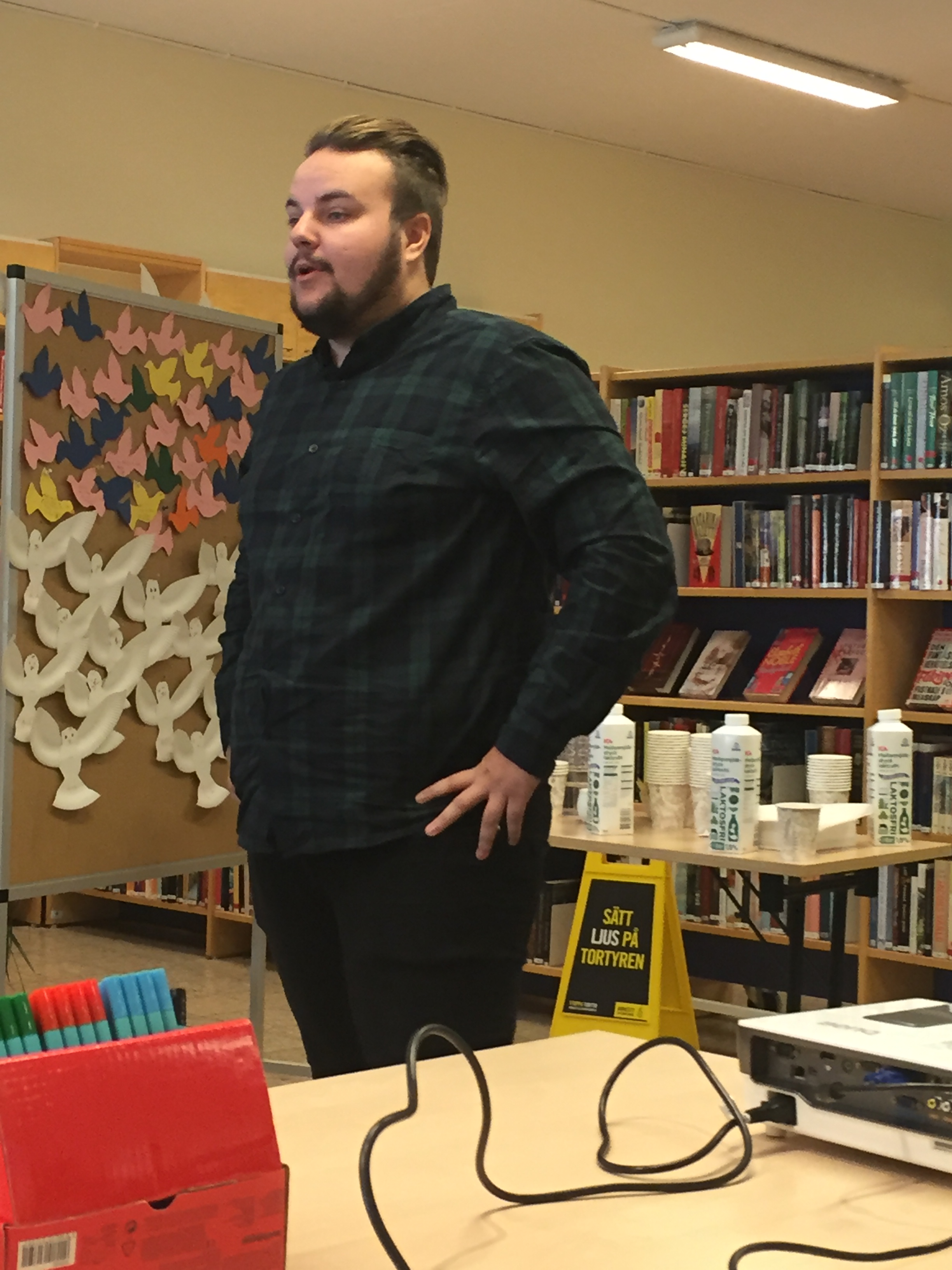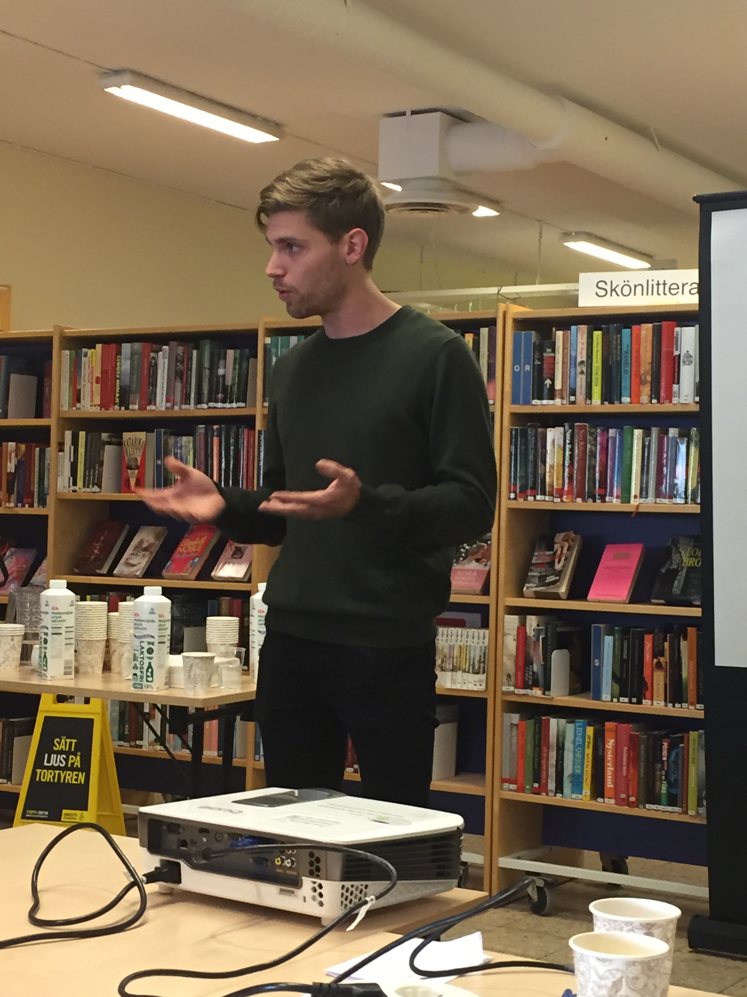 Carl berättade om Visionsfonden och hur man kan söka pengar för att genomföra ett projekt i Helsingborg.