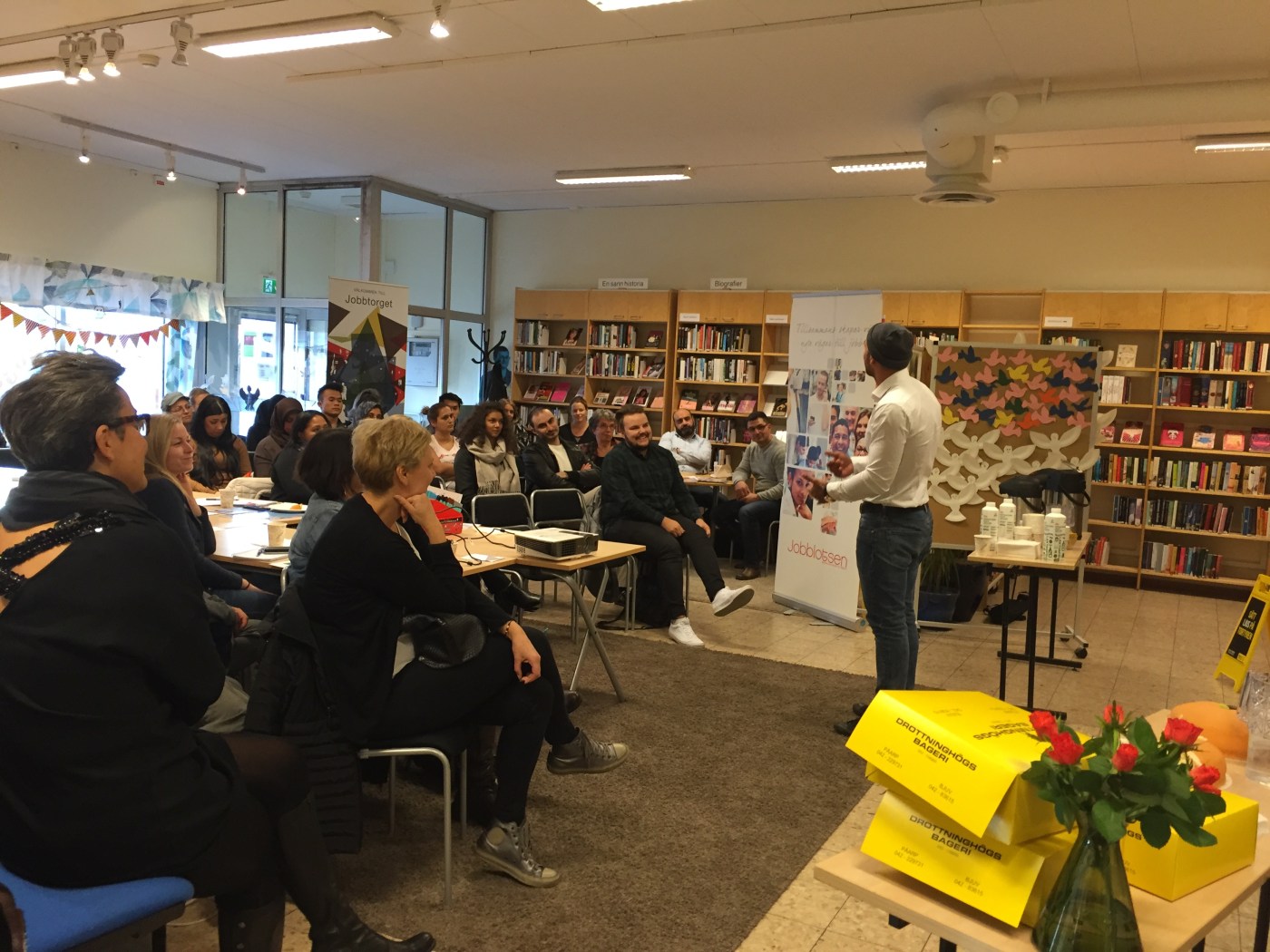Under eftermiddagen har det varit personer från olika organisationer, företag, fonder och stiftelser på plats. De har berättat både om hur man kan bli entreprenör och fullfölja sin egen idé men också om olika vägar för att hitta ett jobb. Konferencier för eftermiddagen är Josef Kiswani. Här kommer några bilder från eftermiddagen!