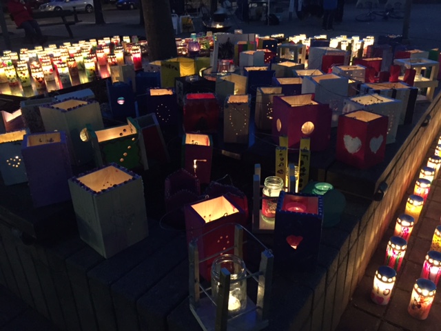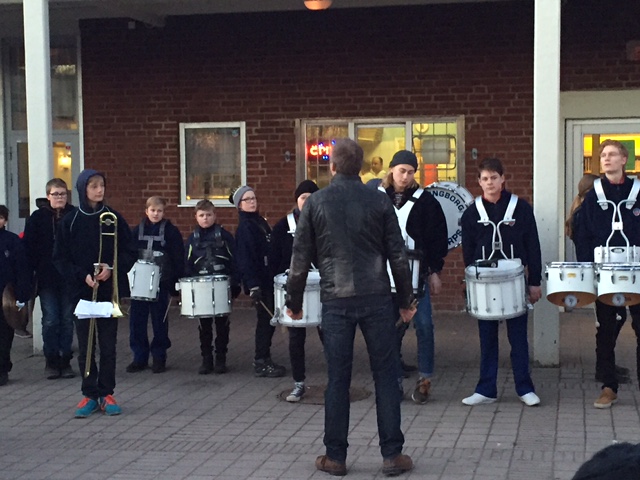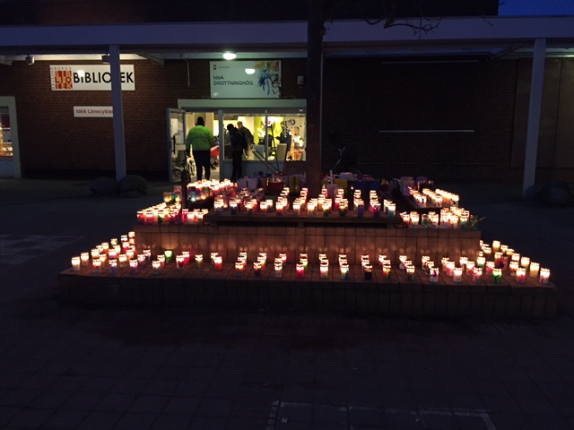 När det började skymma och mörkret smög sig på tändes ljusen på Drottninghög. Barn och vuxna från hela området kom för att titta på ljusen, värma sig runt elden och lyssna till ljuva toner.