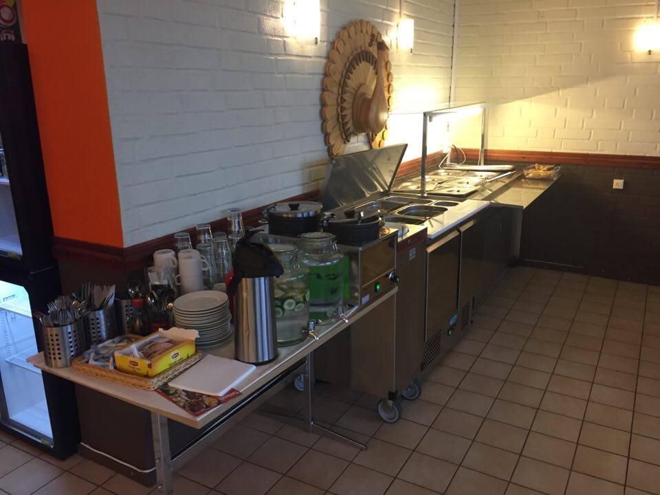 Varje dag serverar man dagens lunch i form av en buffé för 69 kronor. Då ingår soppa flera olika varmrätter och en salladsbuffé samt dricka och kaffe. Idag var det bland annat minvårullar, kyckling, köttgryta och en potatismosgratäng med köttfärs och panerad fisk. Det kändes som at det verkligen fanns något för alla smaker.