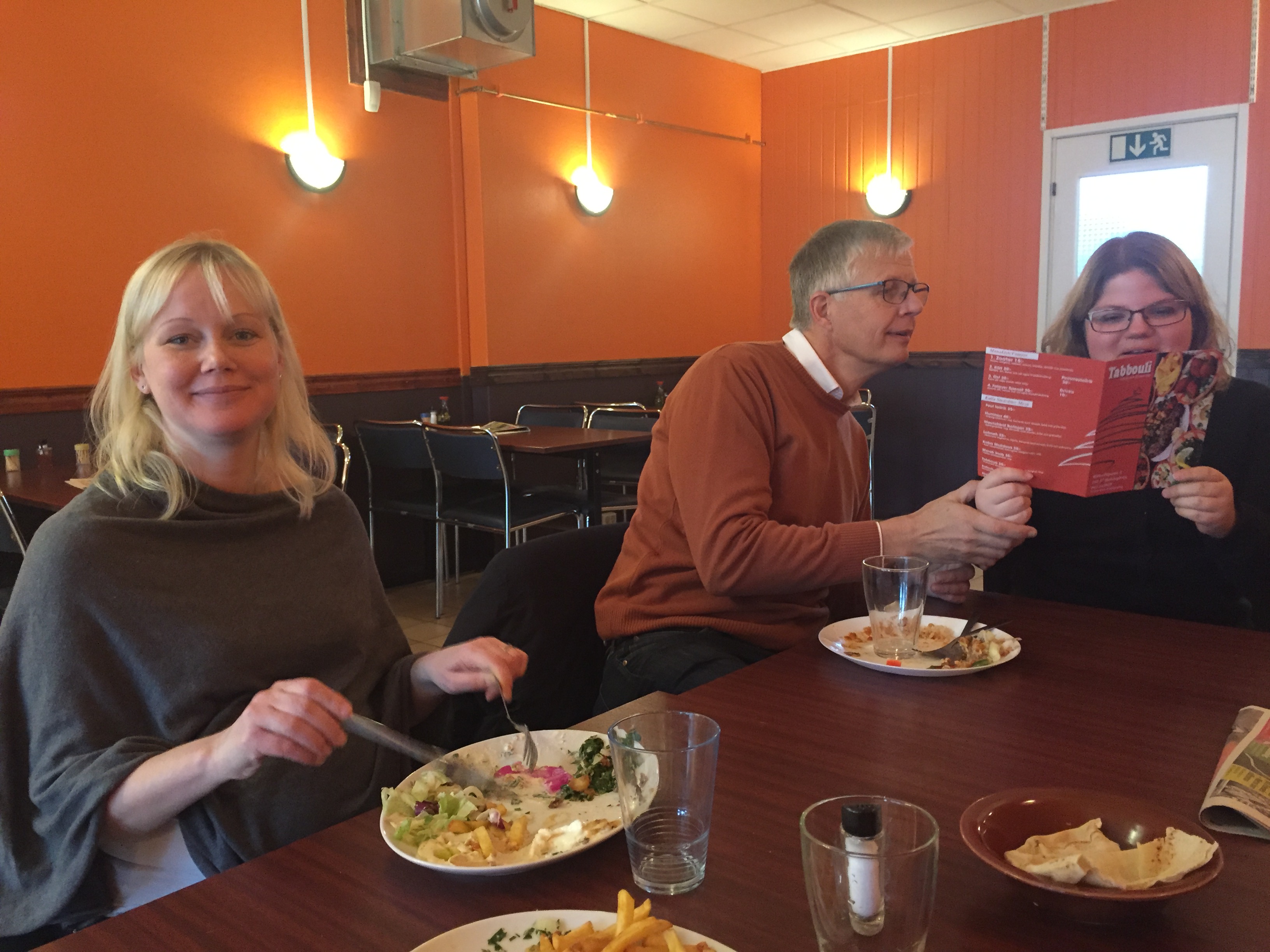 Sedan ett par dagar har äntligen den nya Libanesiska restaurangen öppnat på Drottninghög. Den heter Tabbouli, vilket betyder Lite kryddig på arabiska. Tabbouli är även namnet på en klassisk persiljesallad från Libanon. Det är genom att se hur finhackad och välkryddad en tabbouli är som man vet hur duktig en kvinna är i köket, brukar min Libanesiska väninna säga. Naturligtvis var vi i projekt DrottningH nyfikna på maten. Vi gick dit för att testa lunchen.