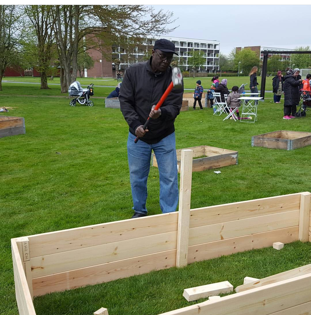 Odlingen har redan börjat ta form och nu ska det odlas! Det kommer förutom blommor, örter och grönsaker finnas både sittplatser och grill!