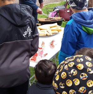 Café Välkommen i samarbete med Rikshem bjöd på fika och Planteringar utan gränser grillade korv.