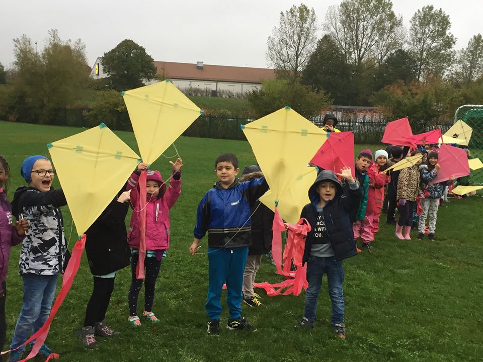 Dag 3 i FN –veckan vilket dåligt väder i dag regn, regn och ingen blåst ända kommer Drottninghögskolan och förskolor med alla dess fantastiska ca 140 barn och pedagoger för att flyga fredsdrake Med start 9.00 och ett ständigt skumpande super tack till alla barn. Föreläsning med Anja Petersen som berätter med stor glöd om flygt på Grönkullagatan 41. sedan en mycket bra föreläsning av Staffan Landin tema FN