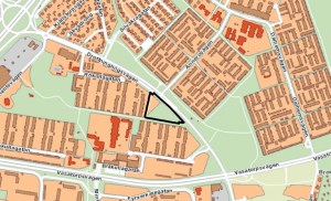 Detaljplanen handlar om det område som är markerat med svart på kartan.