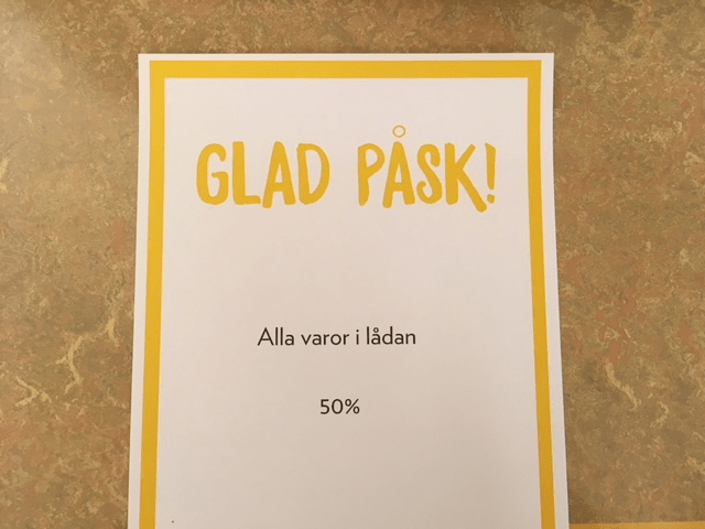 Nästa vecka är det påsk och det vill vi fira med er. Firandet börjar på måndag, 26e april, klockan 9 och Du är varmt välkommen! Vi kommer ha halva priset på en mängd utvalda varor hela påskveckan så kom förbi och hälsa på oss.