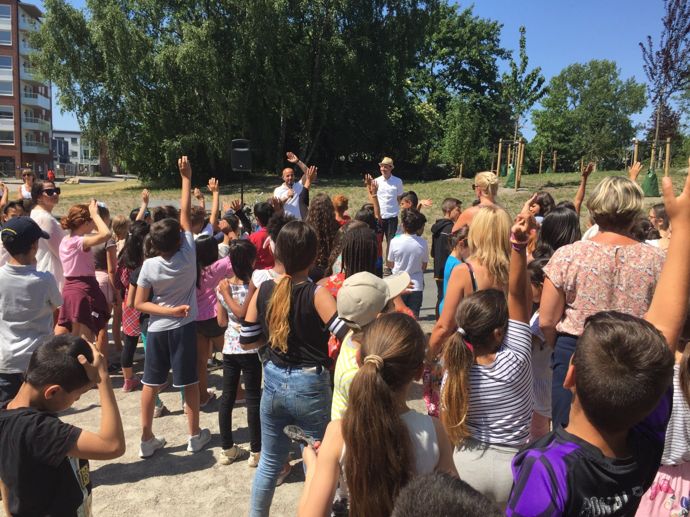 Under invigningen bjöds det på fika med körsbärstema och guidade turer i den nya körsbärslunden och rosenträdgården. Vi avslutademed trädgårdsspel och picknick. Till invigningen kom cirka 350 elever från Drottninghögsskolan som varit med och planterat träd.
