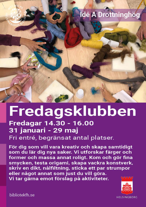 Fredagsklubben är varje fredag kl. 14.30 – 16.00 och pågår fram till 29 maj.