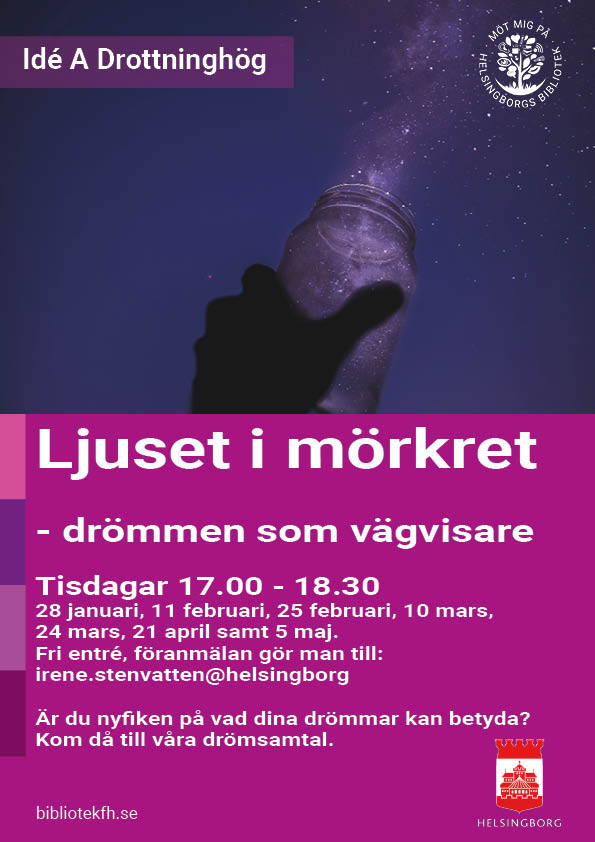 Som tidigare nämnt så händer det massor i vår på Idé A. Denna veckan startar några av våra återkommande aktiviteter som Ljuset i mörkret – drömmen som vägvisare som kommer att hållas varannan tisdag med start 28 januari och pågår till 5 maj.