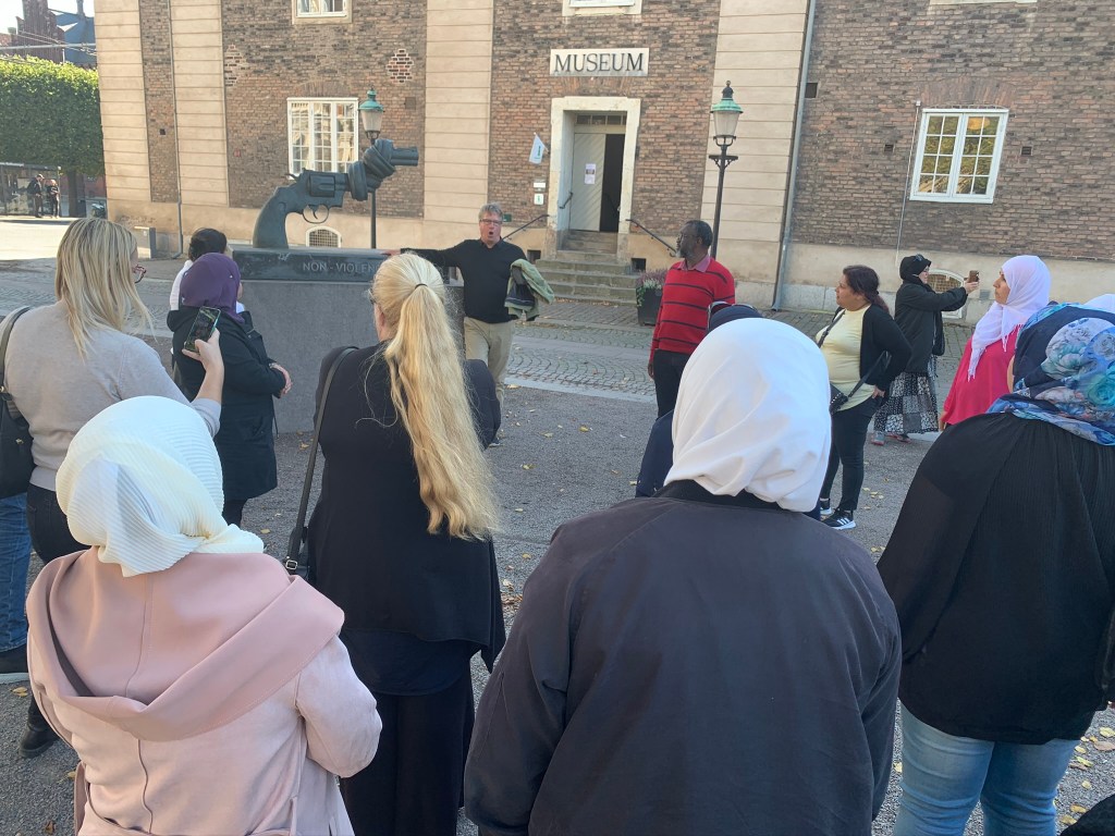 Efter lunch han vi även med att besöka Landskrona museum där det bland annat finns en utställning om Carl Fredrik Reuterswärds skulptur ”Non-violence”.