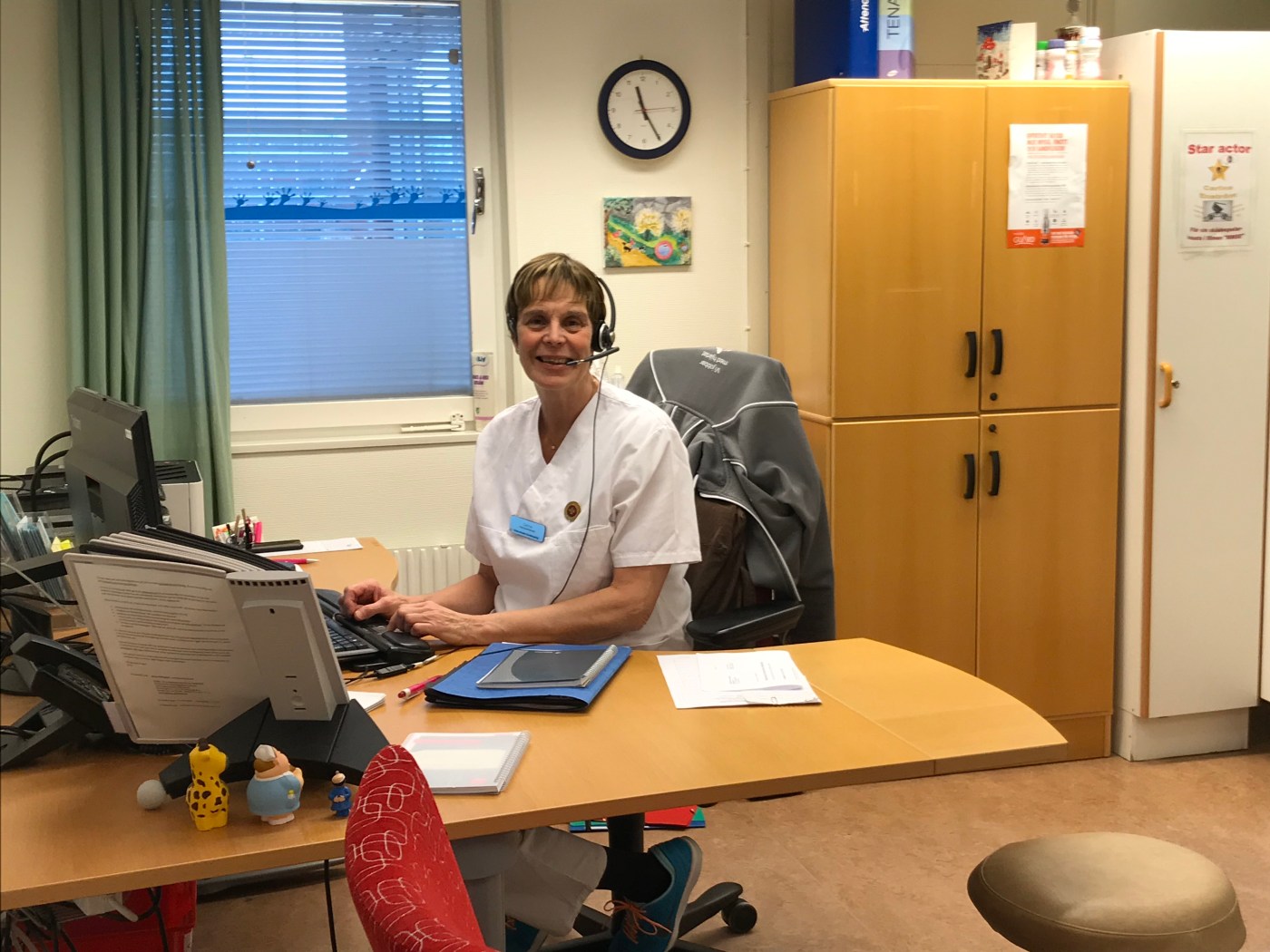 På vårdcentralens Distriktssköterskemottagning arbetar Carina.