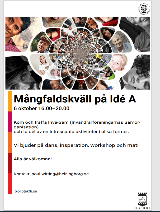Då var det dags för fest! På onsdag 6/10 är ni hjärtligt välkomna till en mångfaldskväll på Ide A mellan 16.00-20.00. Det bjuds på en massa roliga och intressanta aktiviteter, dans och mat. Dela detta: Klicka för att dela på X (Öppnas i ett nytt fönster) X Klicka för att dela på Facebook (Öppnas i ett nytt fönster) Facebook Gilla Laddar in … Relaterade Lämna en kommentar Avbryt svar Δ Denna webbplats använder Akismet för att minska skräppost. Lär dig om hur din kommentarsdata bearbetas.