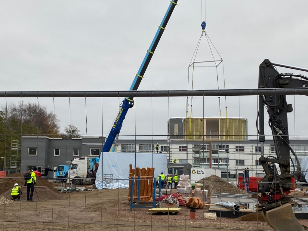 Årskurs 4 på Drottninghögsskolan besökte BoKloks byggarbetsplats för att prata säkerhet och visa upp byggarbetsplatsen. Barnen fick blanda annat lära sig om hur BoKlok bygger husen nästan färdiga i en fabrik i Småland.