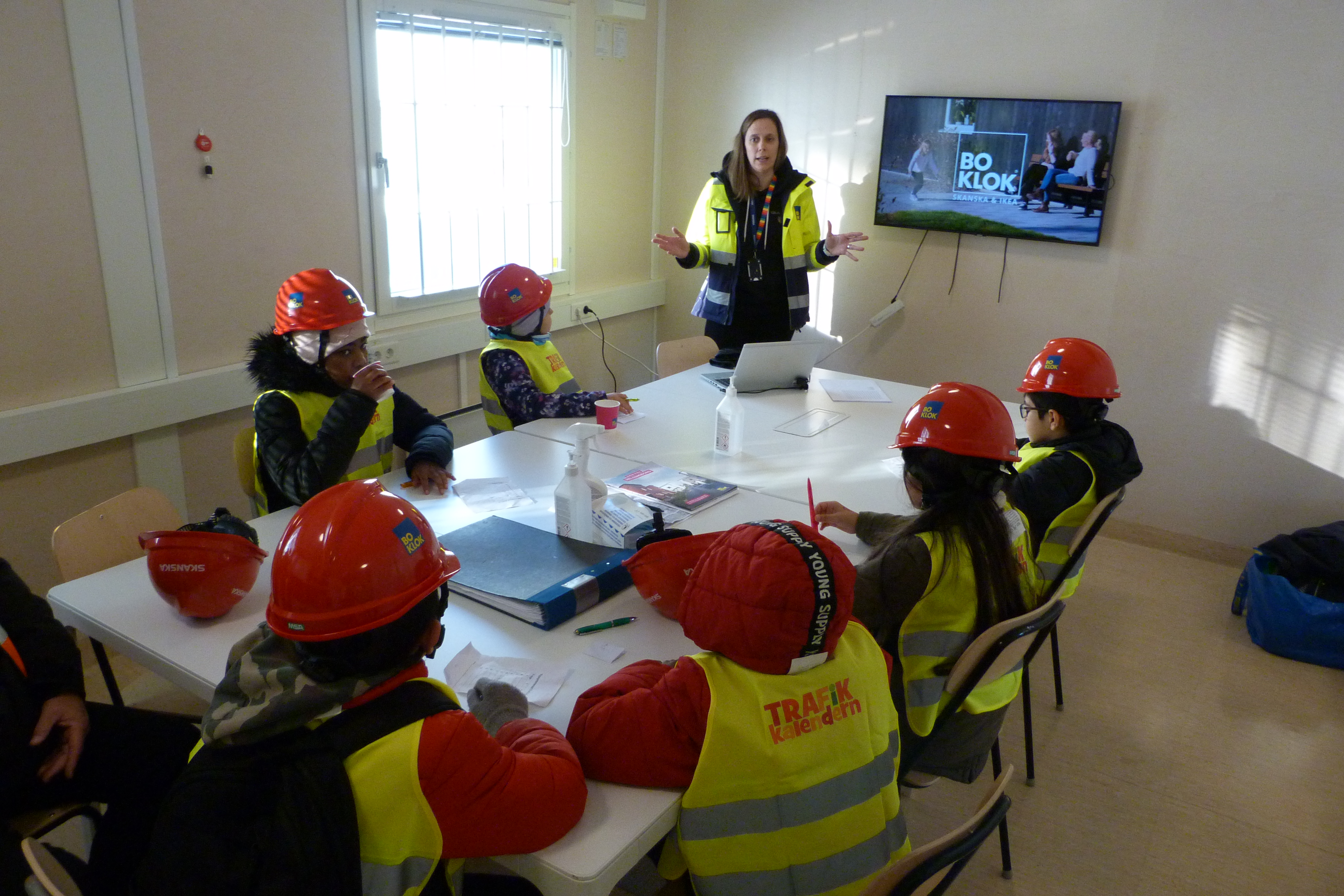 Som avslutning blev det korvgrillning. Studiebesöket är en del av ett längre samarbete mellan Idé A, projekt DrottningH, BoKlok och Skanska. Västarna som barnen fick kommer från trafikkalendern.