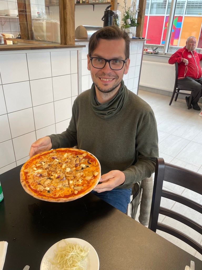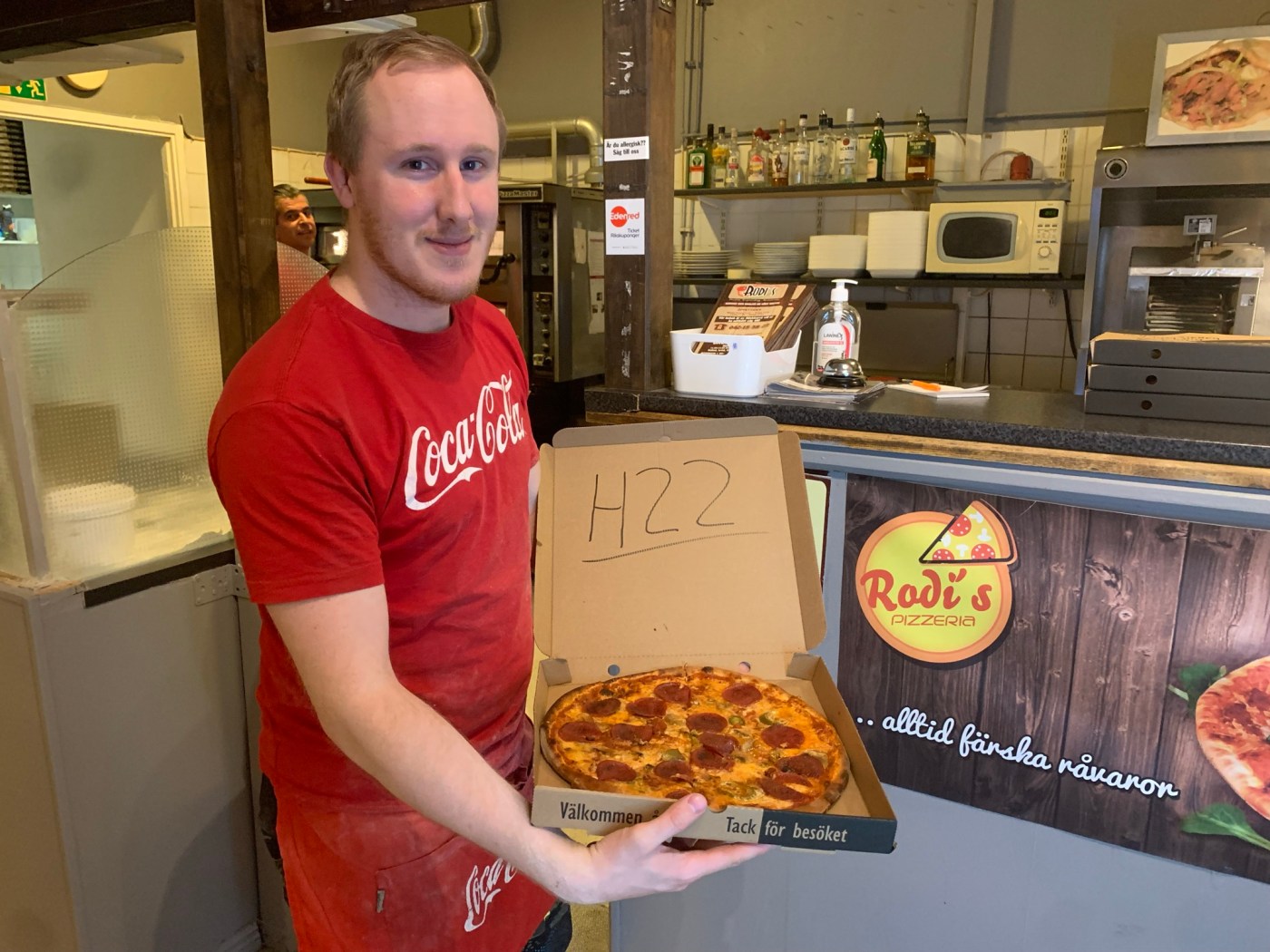 Przemek var den fösta att beställa en H22-pizza och när han fixk höra det så belv han så här glad. Har du provat H22-pizzan och vad tyckte du i så fall om den?