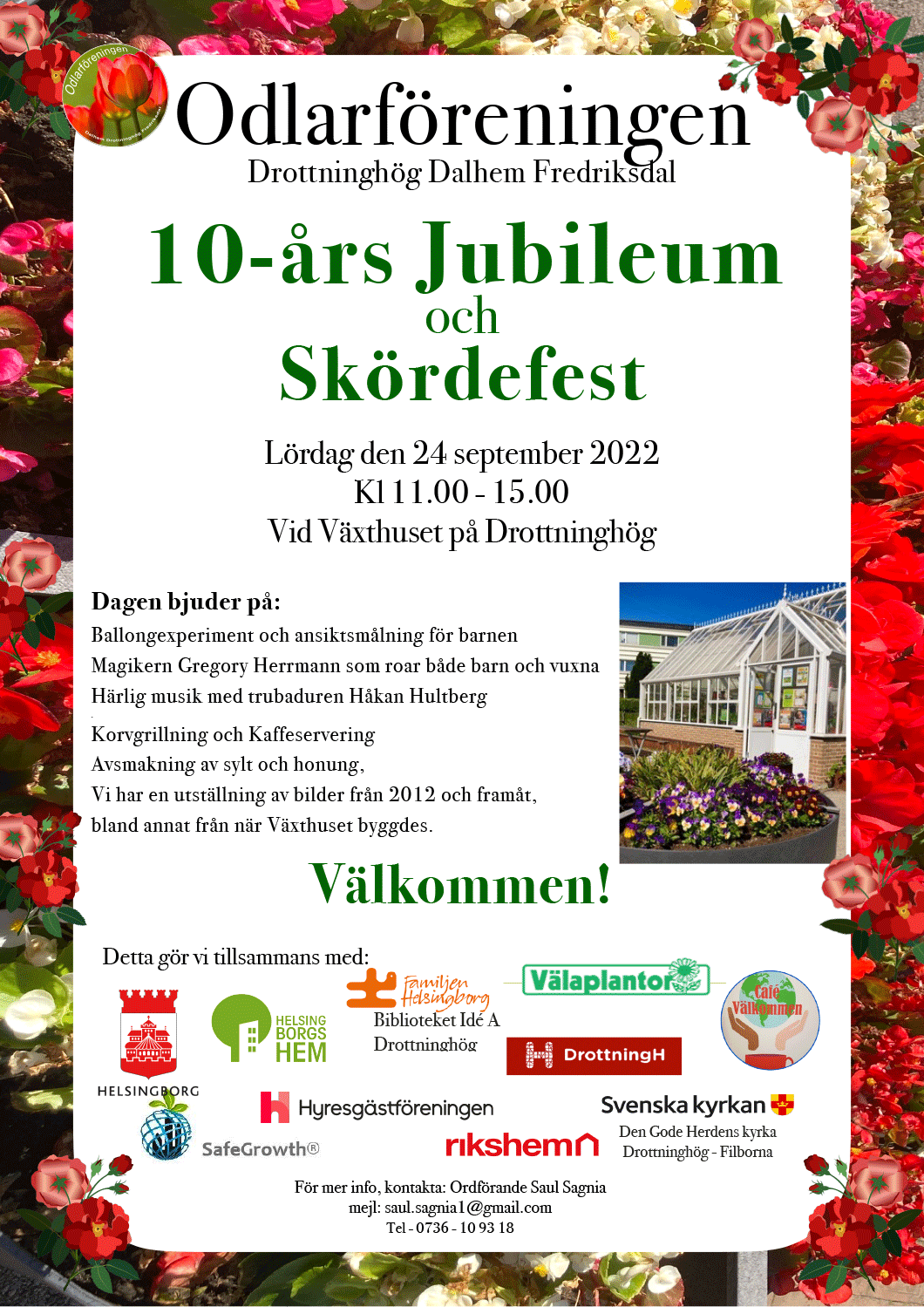Dagen kommer att bjuda på musik med trubaduren Håkan Hultberg. Magikern Gregory Herrmann underhåller barnen – och även oss vuxna! I en annan vrå av odlingen kan barnen få ansiktet målat och Sadeta Avic från föreningen kommer att leda ett spännande ballongexperiment.