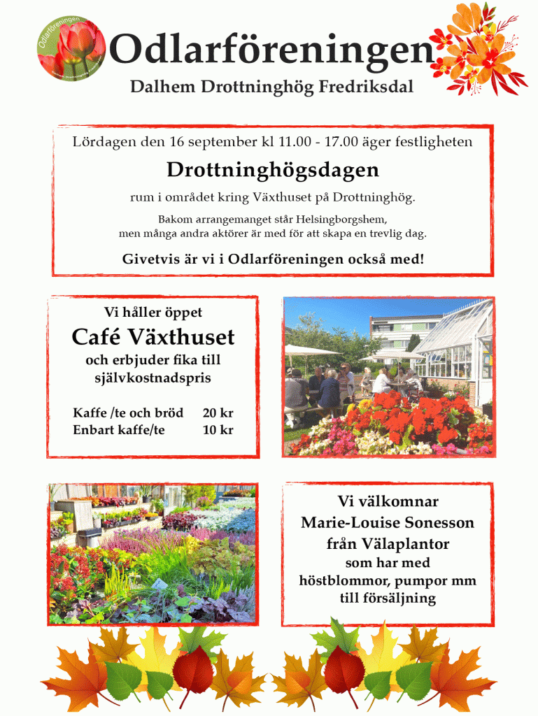 Fest på gång Drottninghögsdagen 2023 – den 16 september 2023, kl 11.00 – 17.00 – med mängder av roligheter för både barn och vuxna! Här nedan kan ni se vad vi i Odlarföreningen har valt att fokusera på. Dela detta: Klicka för att dela på X (Öppnas i ett nytt fönster) X Klicka för att dela på Facebook (Öppnas i ett nytt fönster) Facebook Gilla Laddar in … Relaterade Lämna en kommentar Avbryt svar Δ Denna webbplats använder Akismet för att minska skräppost. Lär dig om hur din kommentarsdata bearbetas.