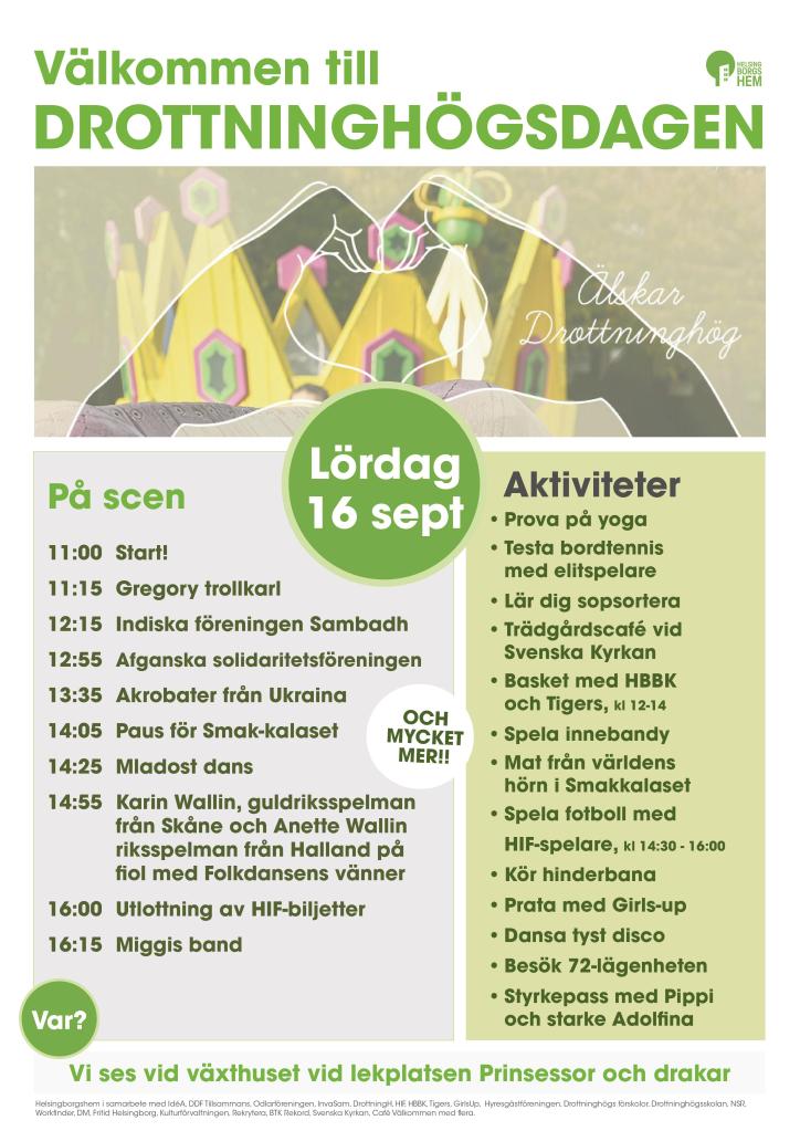 Missa inte Drottninghögdagen! På lördag den 16 september är det områdesfest med massa aktiviteter för alla. Start kl. 11 och framåt. Dela detta: Klicka för att dela på X (Öppnas i ett nytt fönster) X Klicka för att dela på Facebook (Öppnas i ett nytt fönster) Facebook Gilla Laddar in … Relaterade Lämna en kommentar Avbryt svar Δ Denna webbplats använder Akismet för att minska skräppost. Lär dig om hur din kommentarsdata bearbetas.