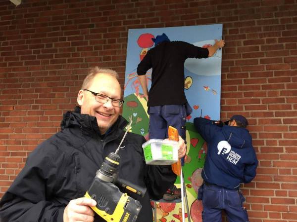 Idag fick vi hjälp av Helsingborgshem för att sätta upp de tre stora konstverken som barnen på Drottninghögs förskolor har gjort tillsammans med konstnären Maria Hendefelt. På måndag kl 10 är det invigning, varmt välkommen till väggen bredvid Ica! Detta är en del av FN-veckan på Drottninghög, här hittar du programmet i sin helhet.